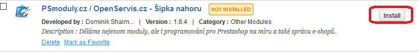 Až si modul najdete v seznamu, stačí kliknout na zelené tlačítko Nainstalovat a máte hotovo.