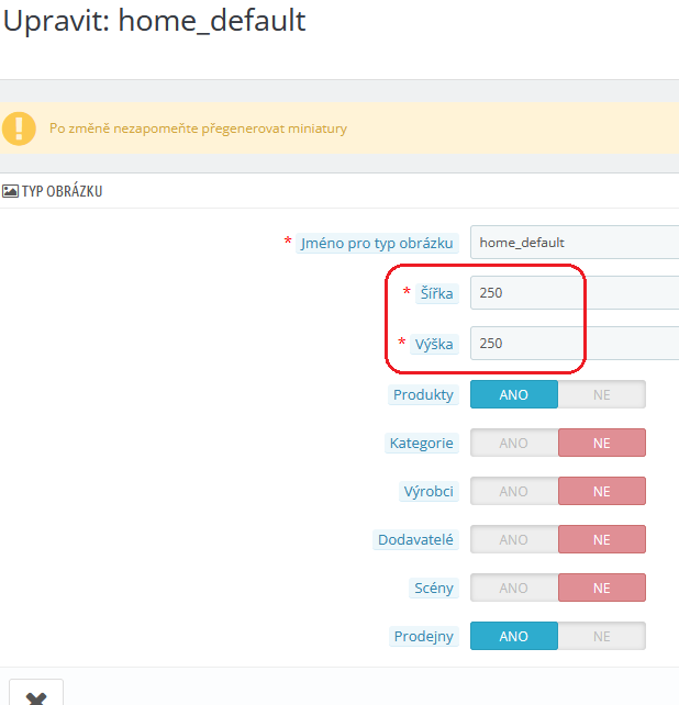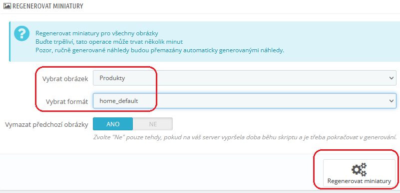 Pokud upravujeme vzhled eshopu a změní se velikost obrázků na eshopu je dobré regenerovat obrázky na správnou velikost.
