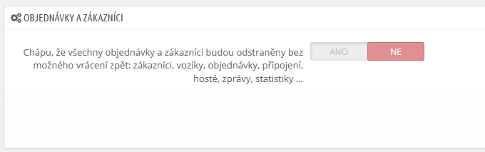 POZOR! odstraní se vše tohle: zákazníci, košíky, objednávky, připojení, hosté, zprávy, statistiky.