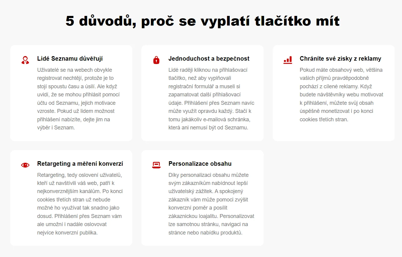 „Google svůj přístup ke konci cookies třetích stran přehodnotil, zatím ale není jasné, co tato změna opravdu přinese. Aktivně nabízená možnost volby uživatelů bude mít pravděpodobně za následek značný pokles v používání cookies třetích stran, a je tedy zapotřebí, aby inzerenti i nadále hledaly nové způsoby, jak identifikovat návštěvníky svých webů a e-shopů. Jednou z možností, jak toho docílit je právě skrze Přihlášení přes Seznam. To usnadňuje proces přihlášení a zároveň umožňuje inzerentům lépe poznat své uživatele díky získaným 1st party datům v podobě e-mailových adres.“