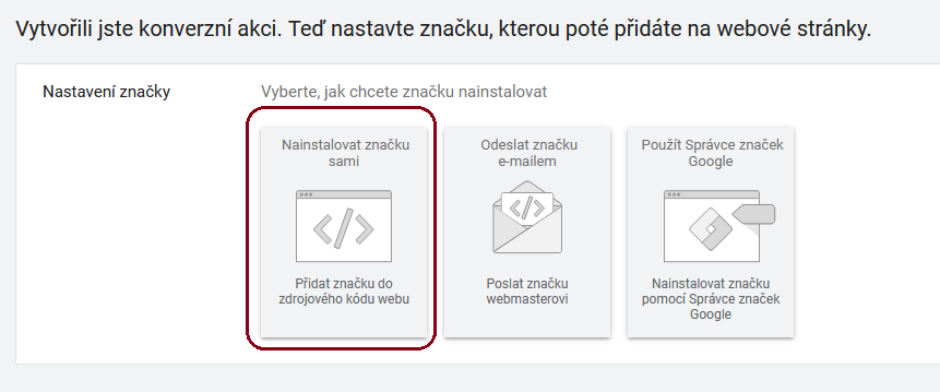 po kliku na nainstalovat značku sami- předchozí krok se otevře okno s pokyny pro přidání značky. Pro Vás je důležitá sekce níže na stránce