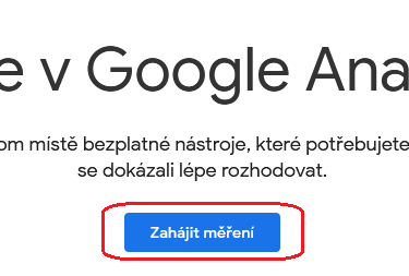 Na stránce Google Analytics klikneme na Zahájit měření.