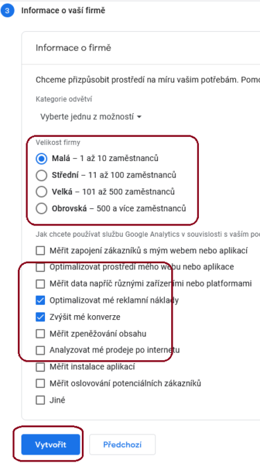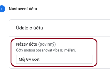 Na další stránce pojmenujeme účet pro měření – v jednou účtu můžeme mít více měření, tzn. pokud máte více webů, postačí jeden účet