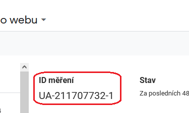 Vytvoříme měřící kód UA-xxxxxxxx