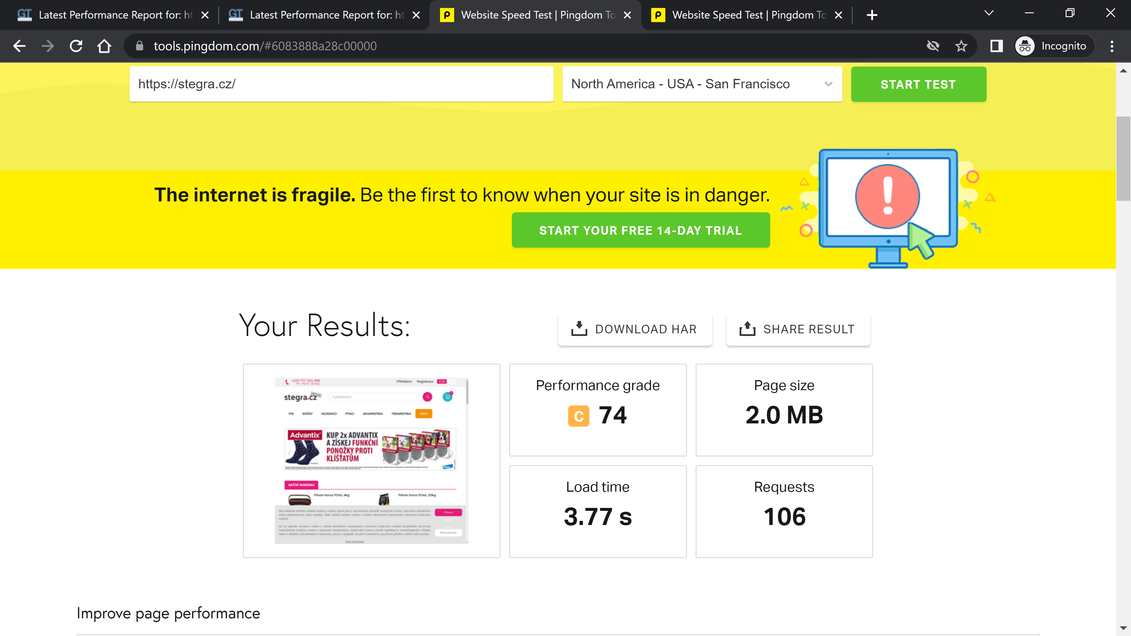 Čím nižší je vzdálenost měřícího serveru k Vašemu hostingu (v tomto případě Česká republika), tím je měření směrodatnější.