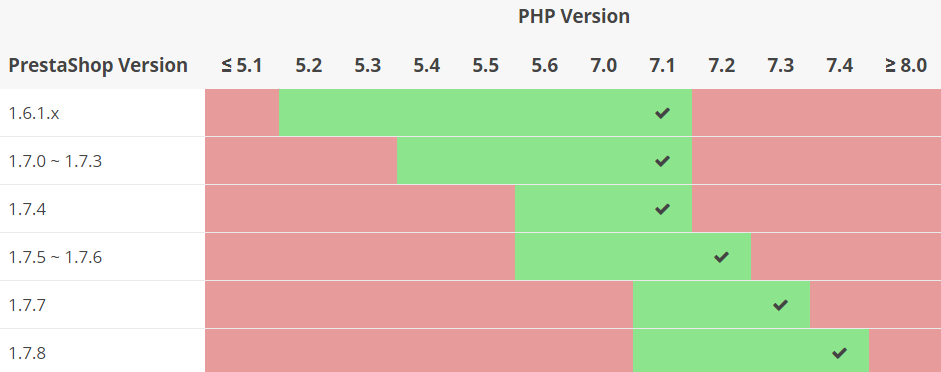 V tabulce chybí PS 8.0 (zatím PS nedodali specifikaci) – proto nevíme jaká bude oficiální specifikace, ale z naší zkušenosti je možno zprovoznit tuto verzi i na nejnovější verzi PHP. Tipujeme tedy, že to bude oficiálně PHP 7.1 – 8.2, tak uvidíme, jestli se trefíme 🙂