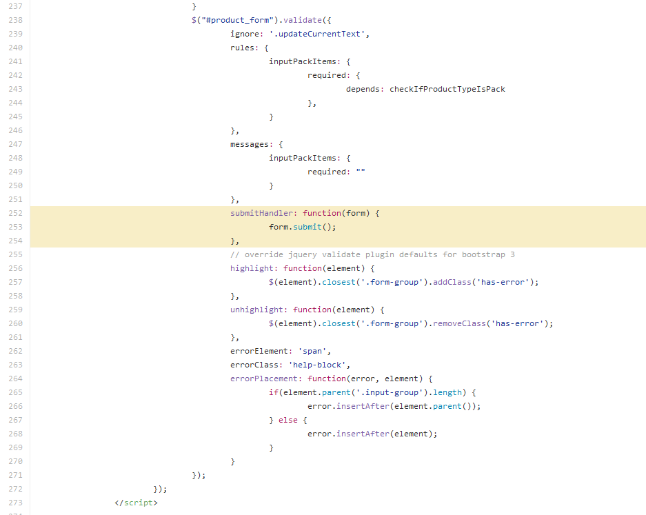 kde na řádku kolem 250 odstraníme nebo zakomentujeme tento text submitHandler: function(form) {form.submit();},