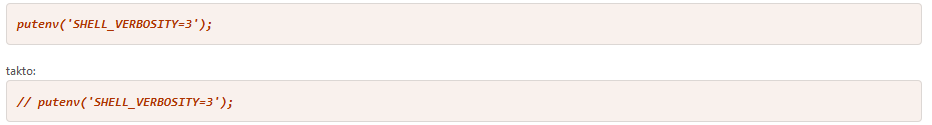 a řádku 122 zakázat funkci putenv pomocí dvou lomítek // putenv(‚SHELL_VERBOSITY=3‘);