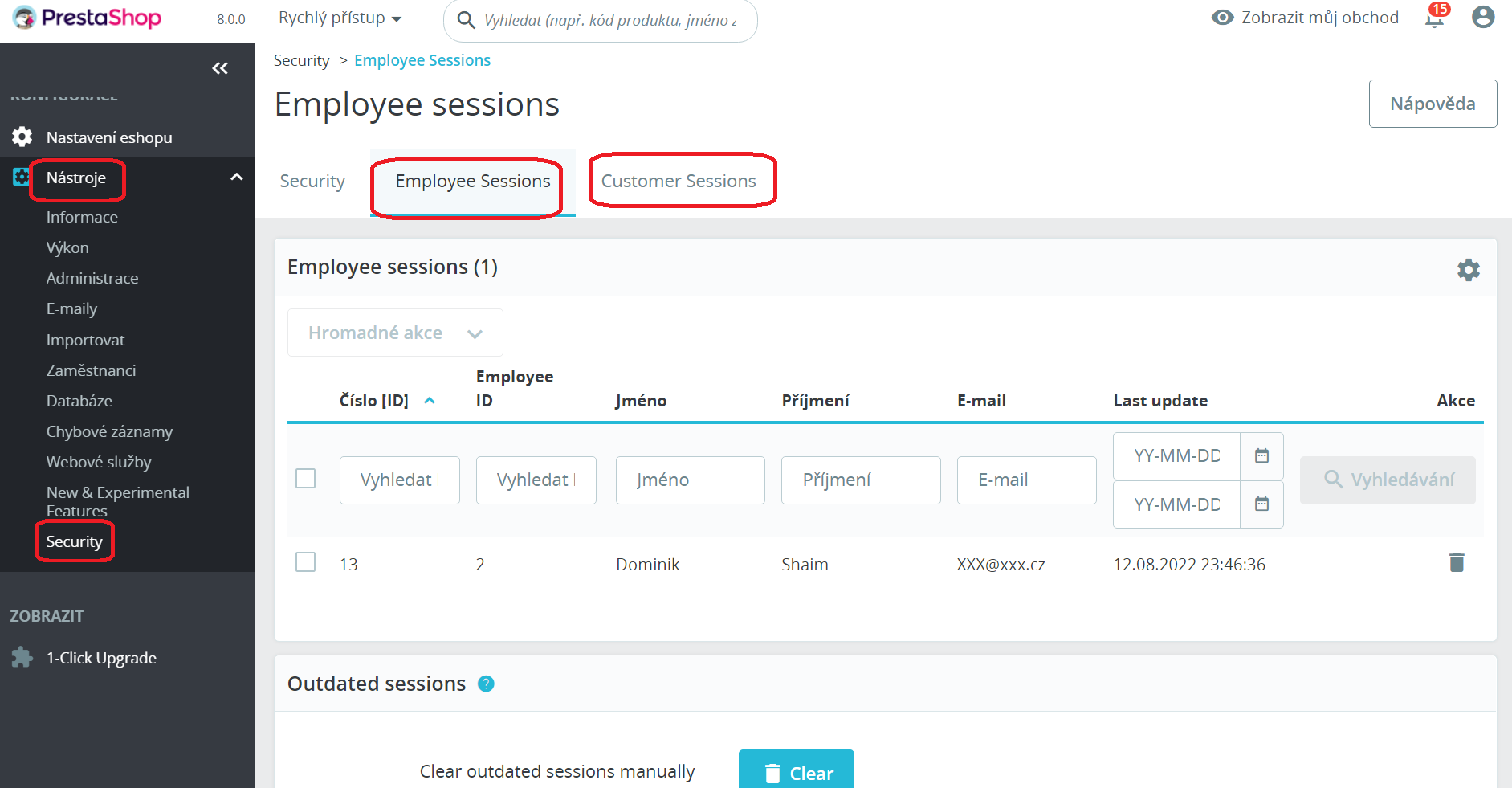V PS 8.0 je jedna z novinek možnost přehledu o přihlášených zákaznících i administrátorech.