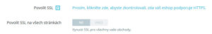 Nejprve klikem na „klikněte zde “ ověříme, zda je certifikát na hostingu nastaven správně a vše bude fungovat. Pokud je vše v pořádku změní se odkaz na přepínač