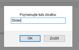 Ve vyskakovacím okně si zkratku pojmenujeme podle sebe