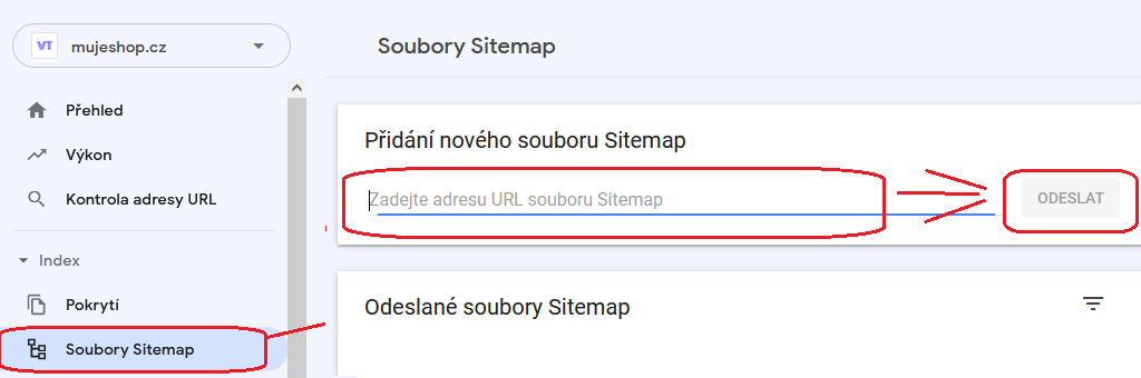 Po ověření vložíme adresu souboru sitemap a odešleme.