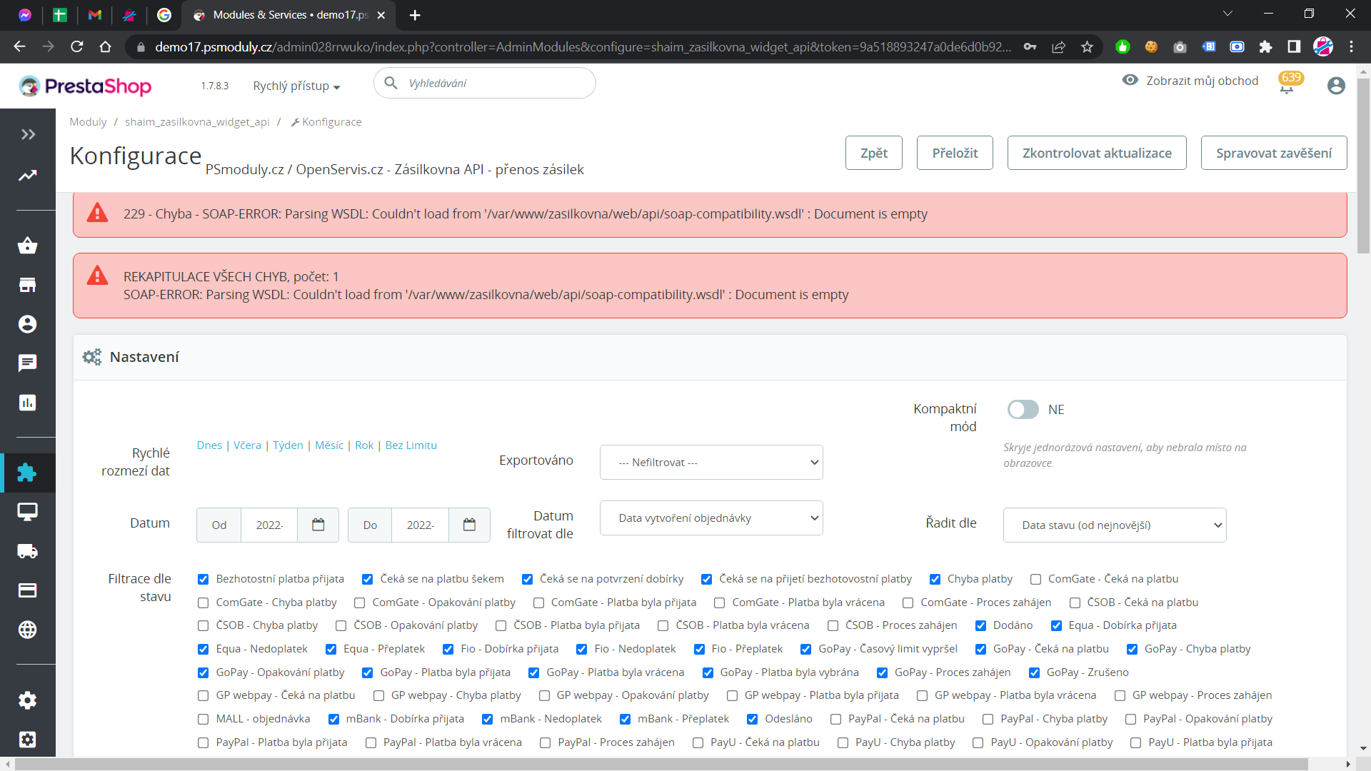 SOAP-ERROR: Parsing WSDL: Couldn’t load from ‚/var/www/zasilkovna/web/api/