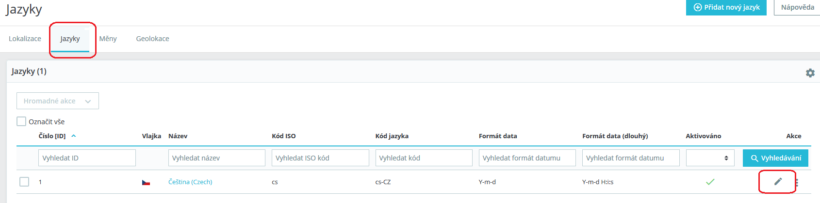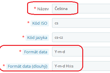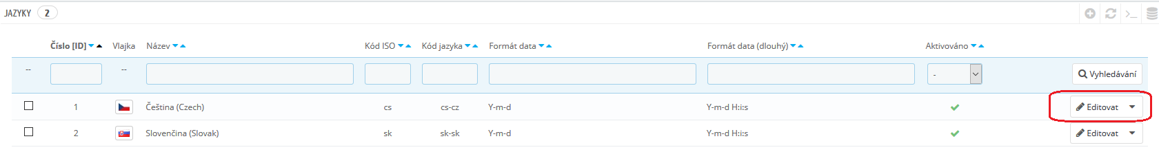 kde opět stejně jako v PrestaShopu 1.6 upravíme pole Formát data a Formát dlouhý
