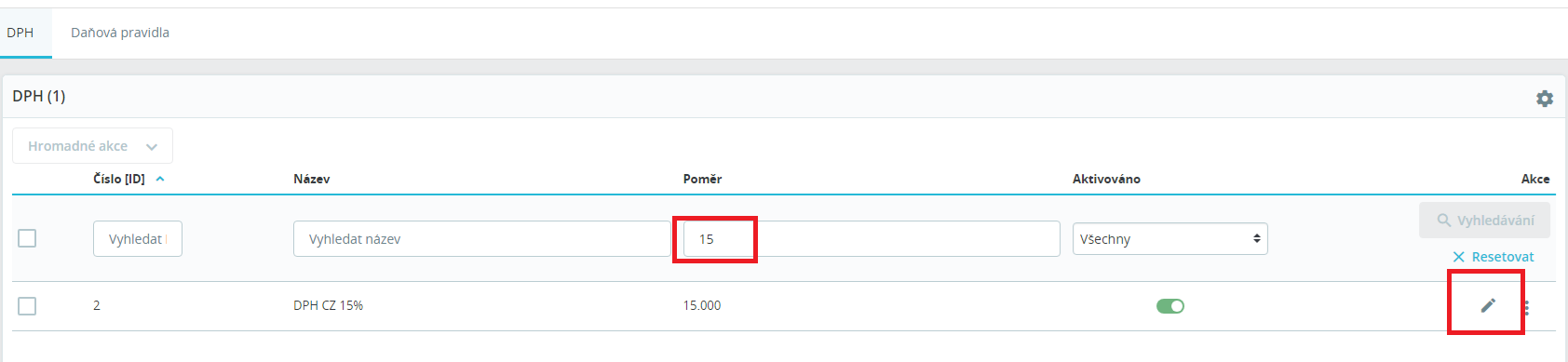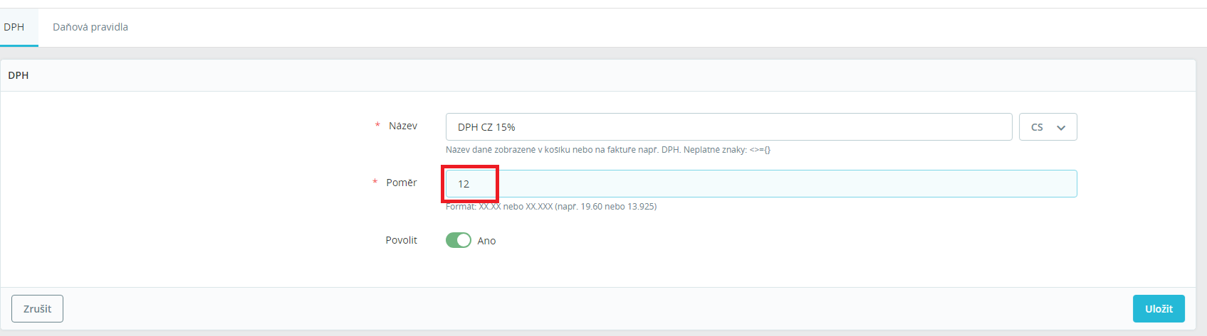 Následně změníte 15% na 12%.¨To samé uděláte se sazbou 10% (pokud ji používáte).