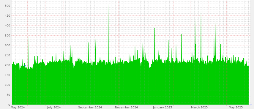 PrestaShop eshop jednoho z našich zákazníků si udržuje konstantní hodnotu TTFB okolo 200 ms už déle než rok – a to díky našemu tarifu OpenServiS PROFI. (viz. obrázek níže)